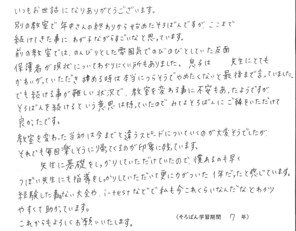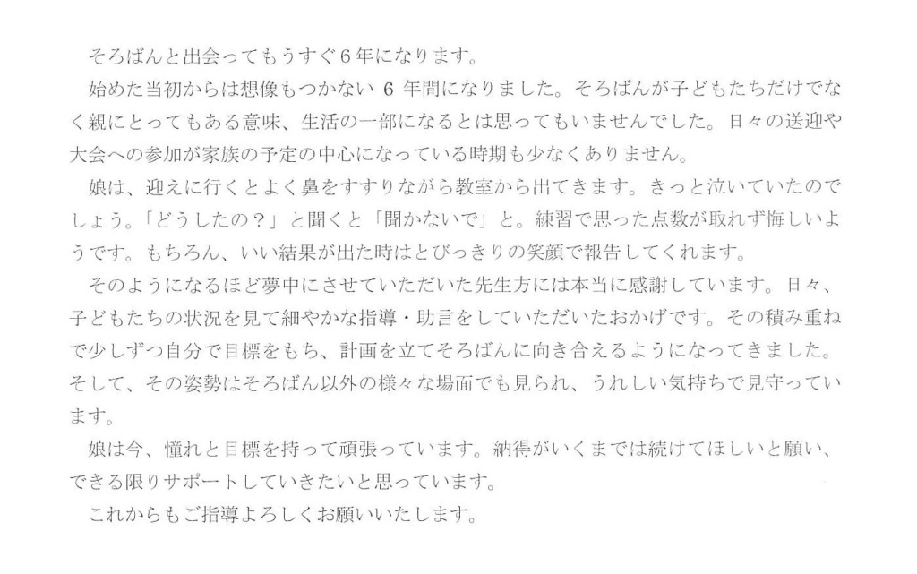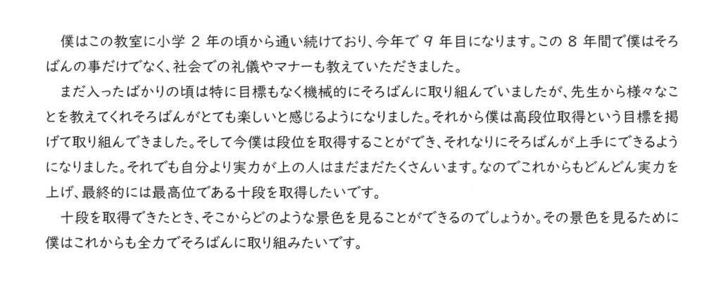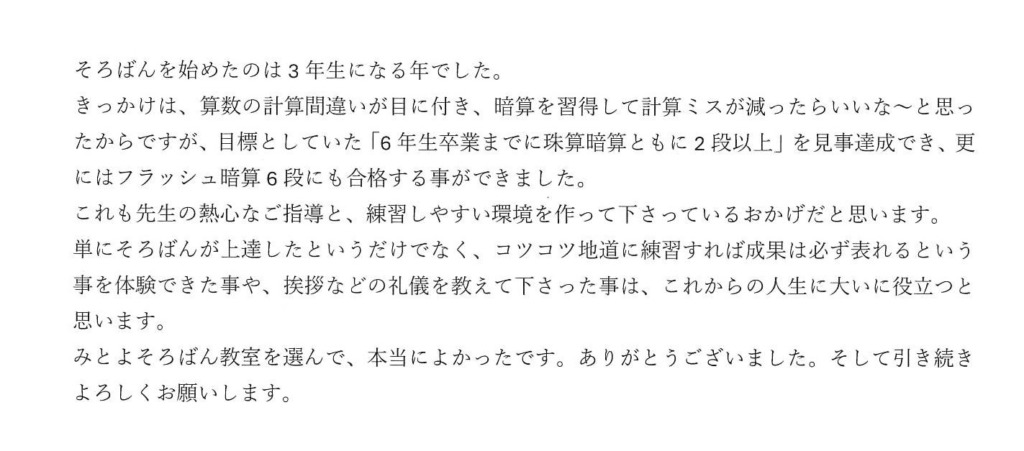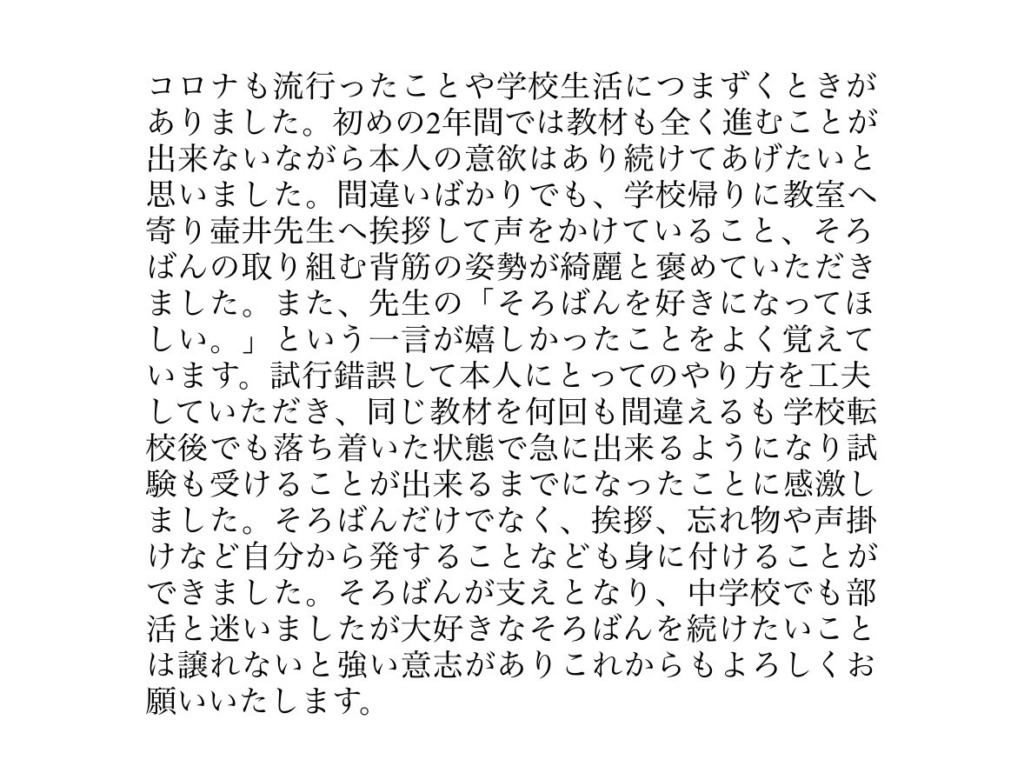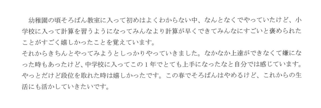 ※学校卒業ではありませんが、3月で一旦そろばん生活に区切りをつけるということでメッセージを頂きました。